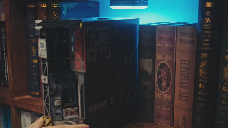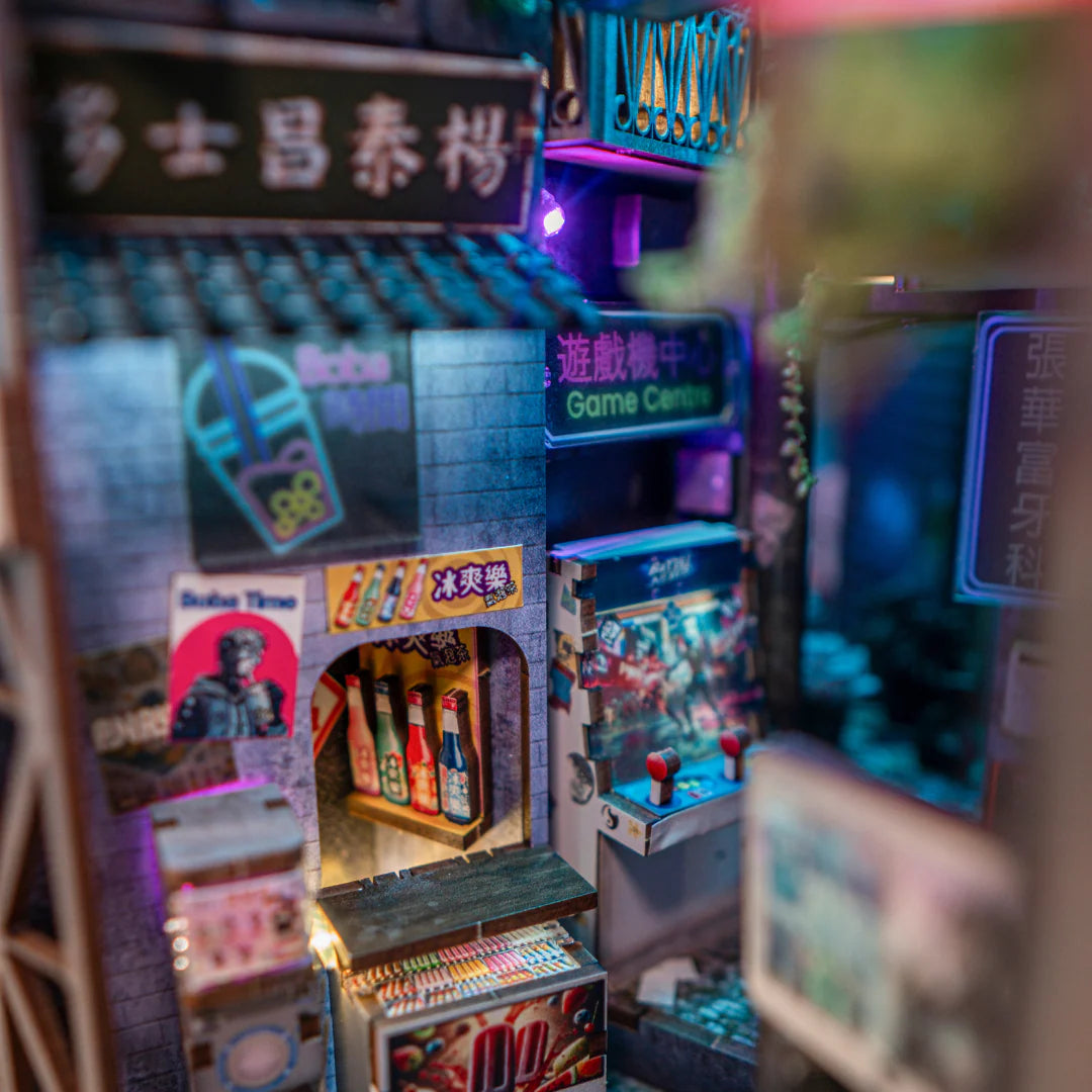 Step into the gritty, neon-lit future of Kowloon Walled City with our DIY book nook kit. Assemble bustling alleyways filled with hidden dental clinics, vibrant signboards, and dripping pipes, a scene that captures the city’s raw charm and resilience. Each detailed piece immerses you in a dystopian cyberpunk vision, transporting you to the heart of this legendary urban maze in 2049.